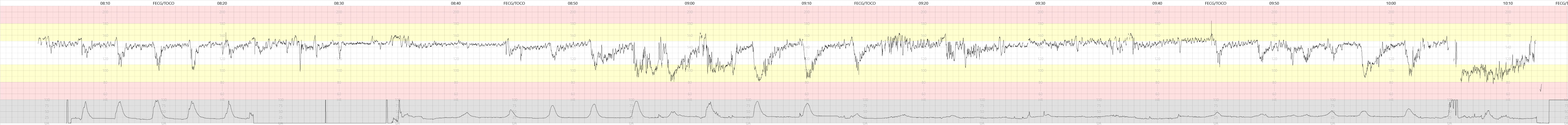 • 09.07 VE:  Cx fully dilated, vx +1. The patient is coping well and using breathing technique. Trying to improve the CTG tracing by changing position to left side.